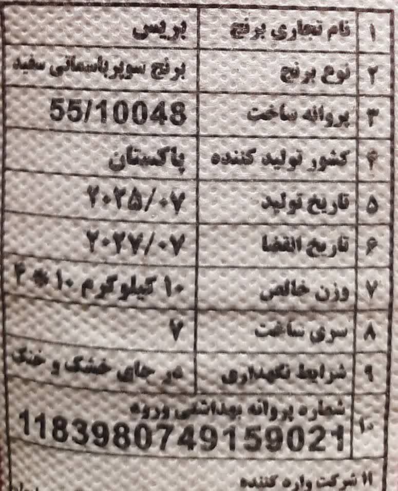 برنج سوپر باسماتی 386 بریس (پاکستانی)